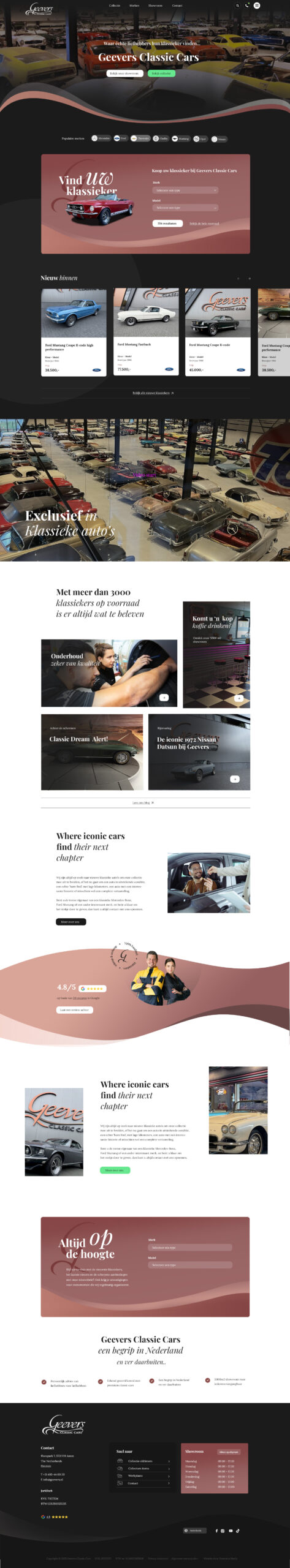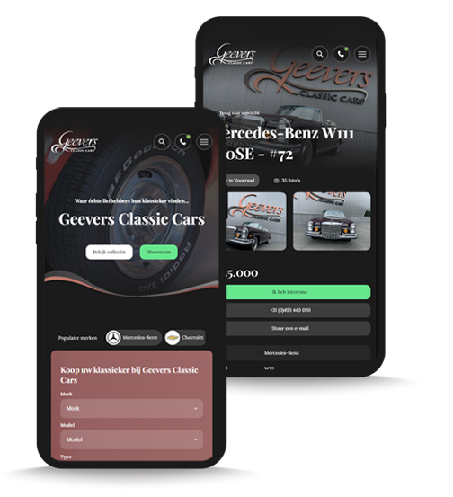 De nieuwe website is volledig maatwerk en gebouwd in WordPress. Dit zorgt voor snelle laadtijden, een duidelijke structuur en een professionele uitstraling die past bij Geevers Classic Cars. Daarnaast is de site technisch geoptimaliseerd voor SEO en AI, waardoor hij beter gevonden wordt.